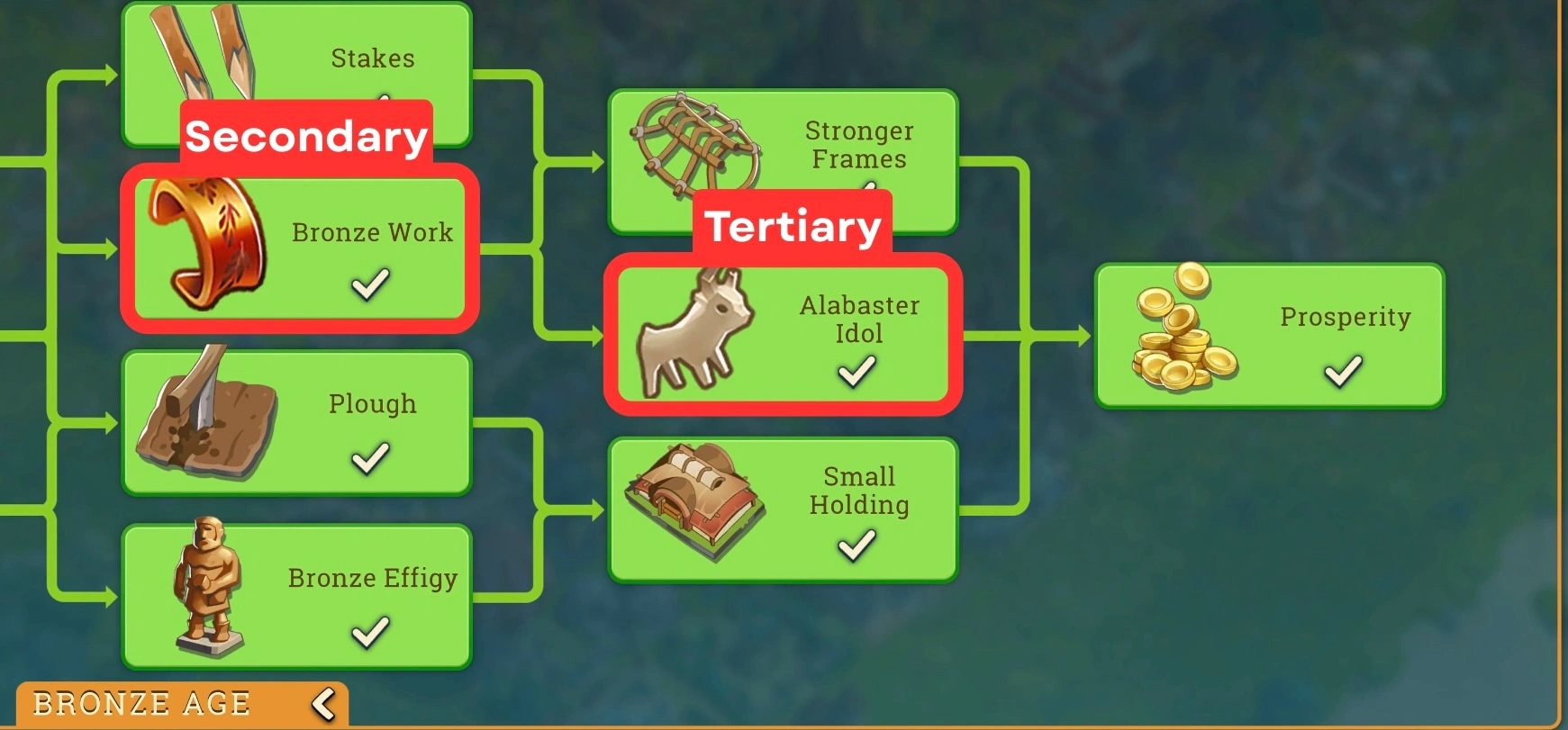 Look at the order in which goods technologies appear in your current era